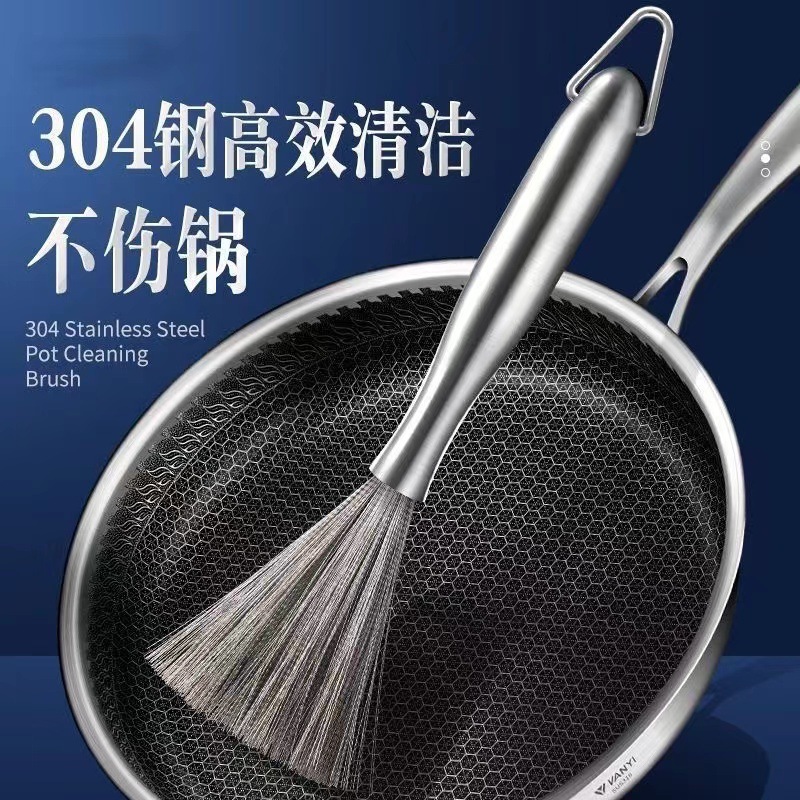 304ステンレスの鍋は台所のワイヤーブラシの長い柄をブラシします。