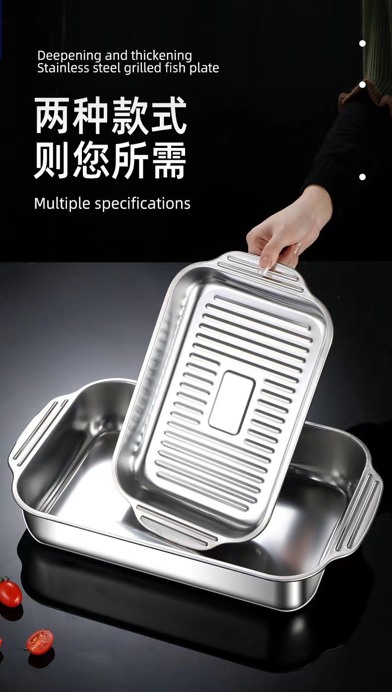 国境を越えたステンレスの焼き魚皿蓋付き焼き皿ハンドル付き海老皿家庭用海鮮皿スポット卸売り