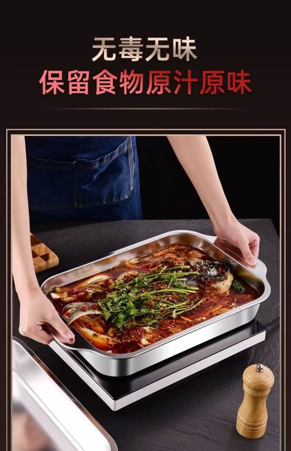 不锈钢特厚烤鱼盘方形电磁炉小龙虾烤肉盘专用烧烤盘夜市火锅商用