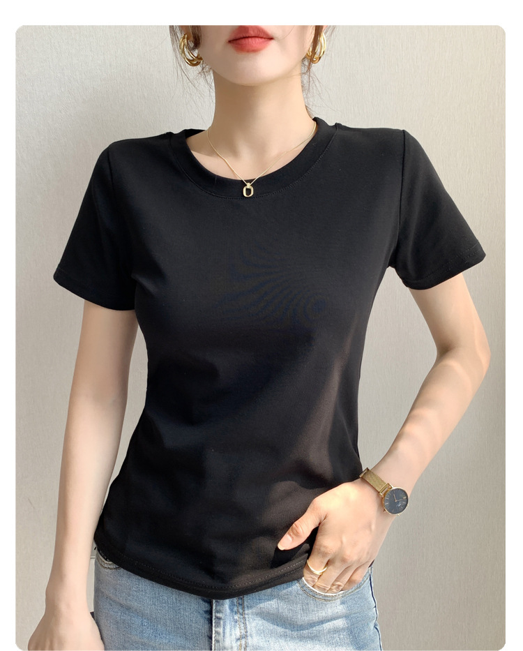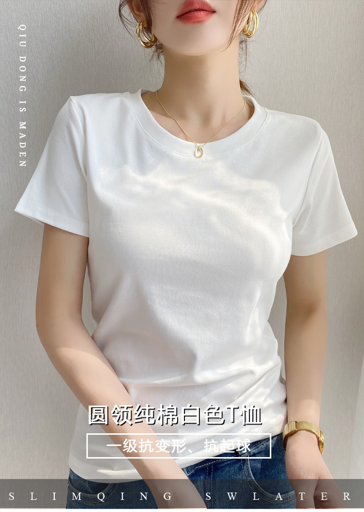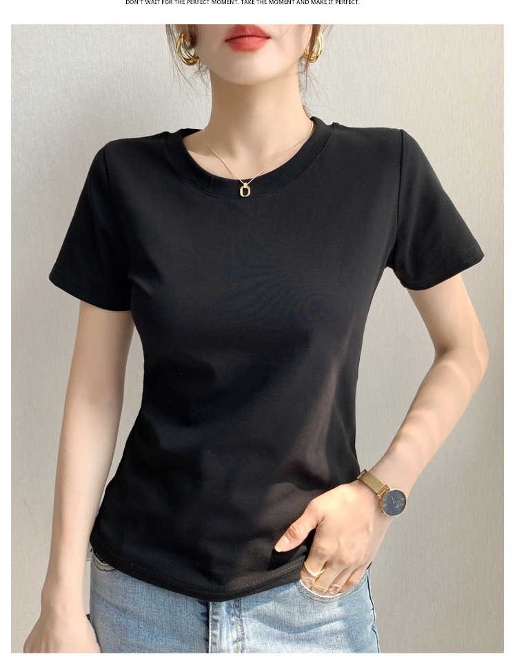 230G重磅纯棉正肩修身短袖t恤女基础款圆领显瘦内搭半袖打底上衣