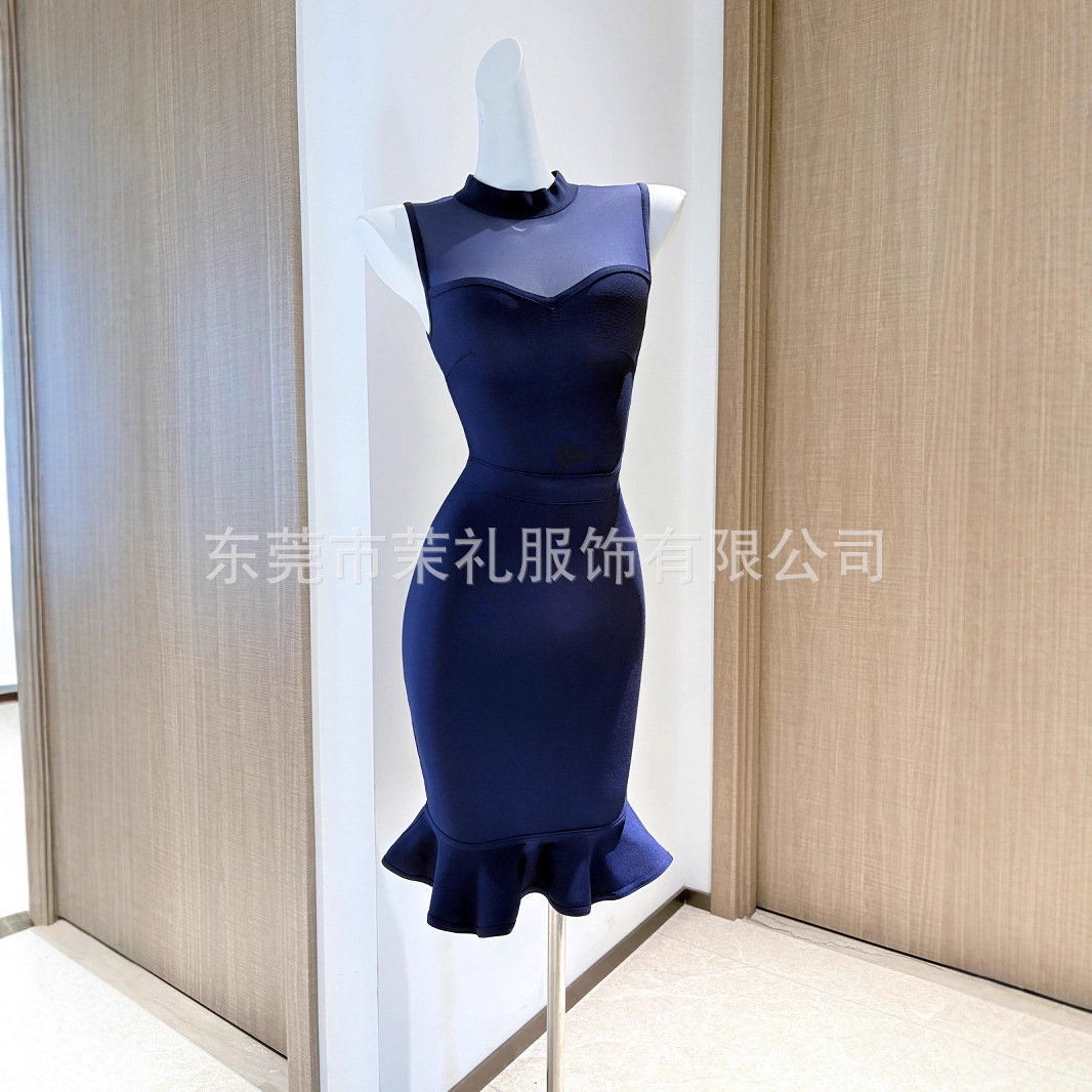 欧美高端时尚紧身鱼尾连衣裙气质优雅荷叶边OL绷带裙