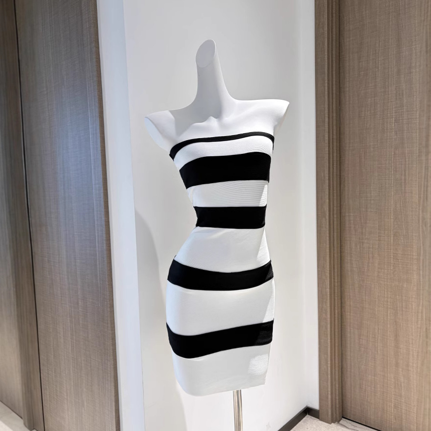 夏の起爆ファッション白黒ニットは胸を拭き、腰を包んで尻を拭き、胸を拭きます。