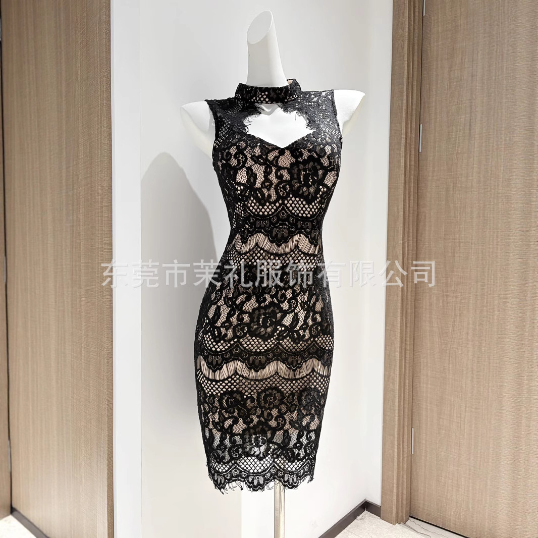 新品軽豪華高級感ブラックレースセクシータイトvネック名媛バッグヒップワンピース