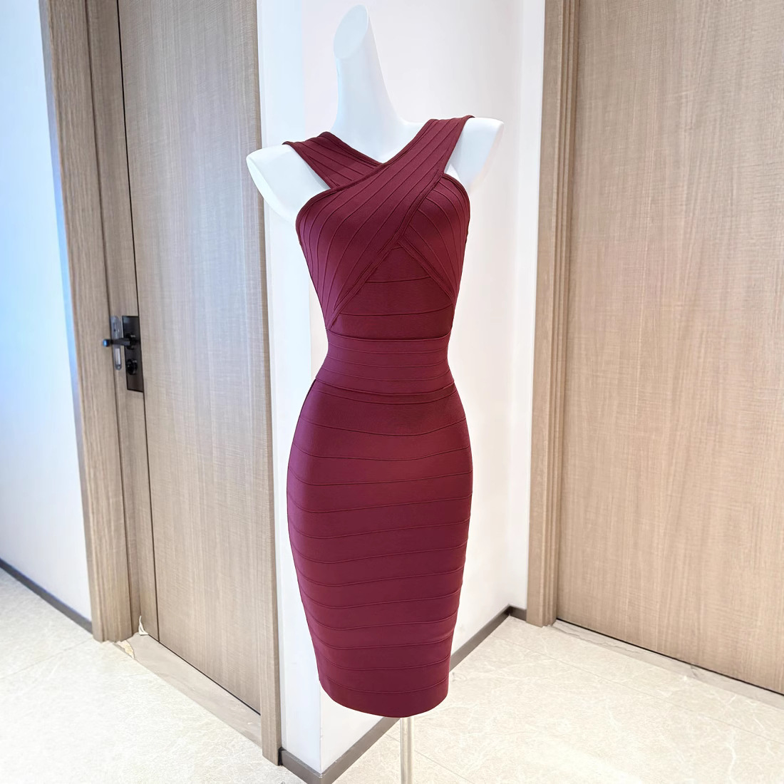国境を越えた対外貿易欧米の女性の交差セクシーな包みの尻の修身の気質の包帯のスカートのワンピース