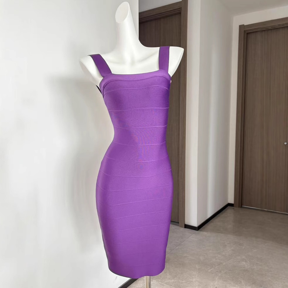 欧美东南亚外贸批发女装纯欲辣妹紫色抹胸连衣裙绷带裙