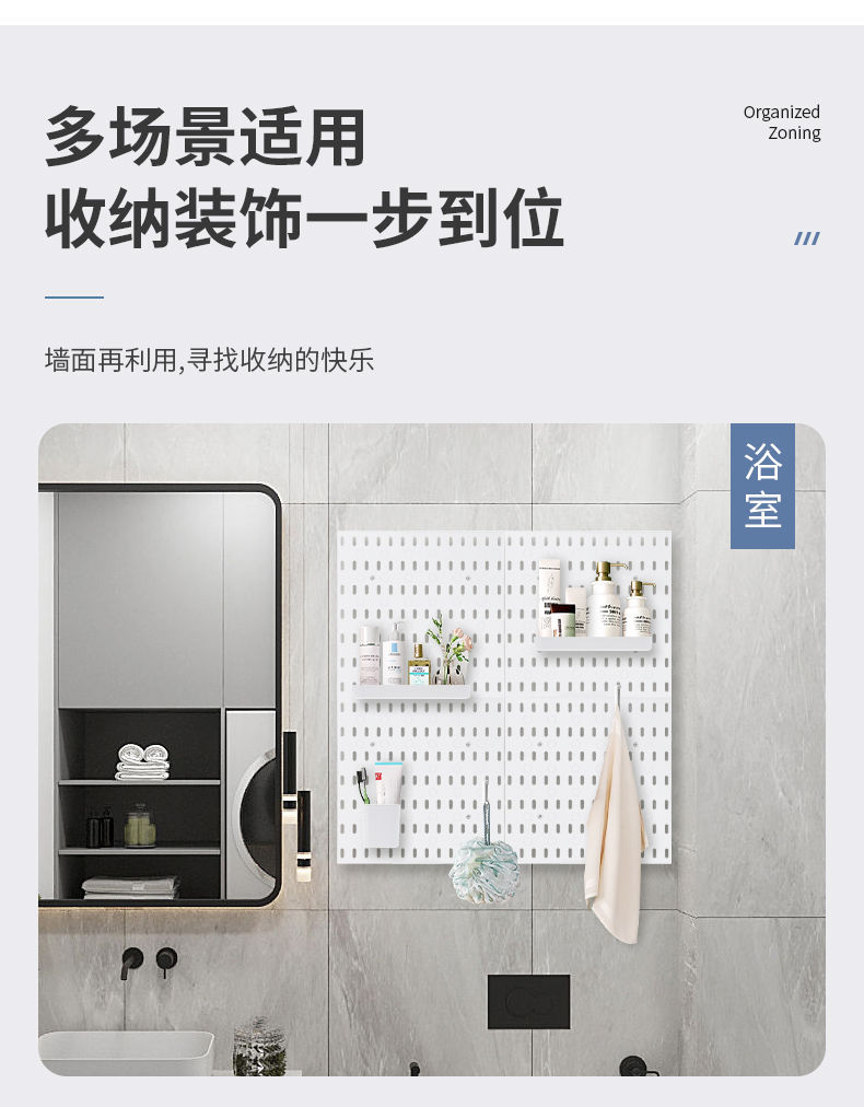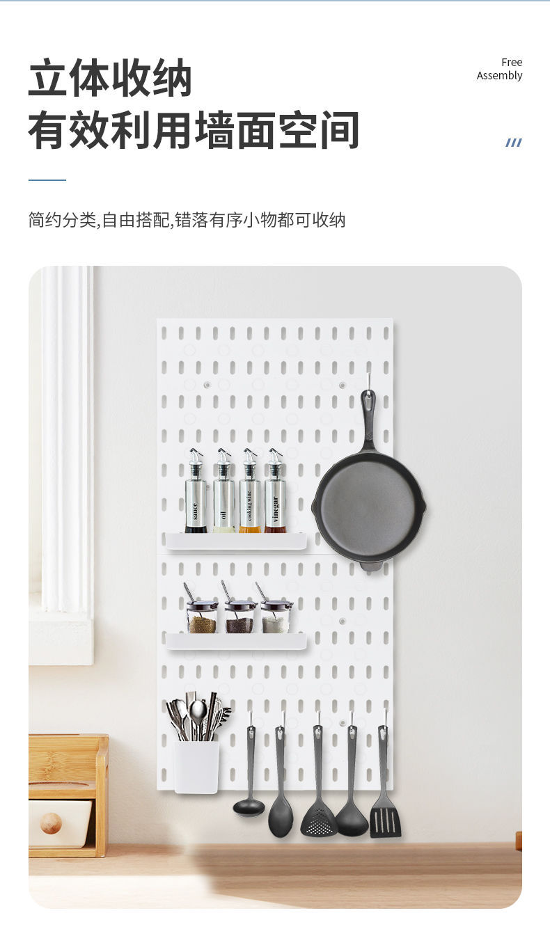 家用洞洞板置物架免打孔墙面壁挂卧室宿舍厨房浴室墙上收纳洞洞板