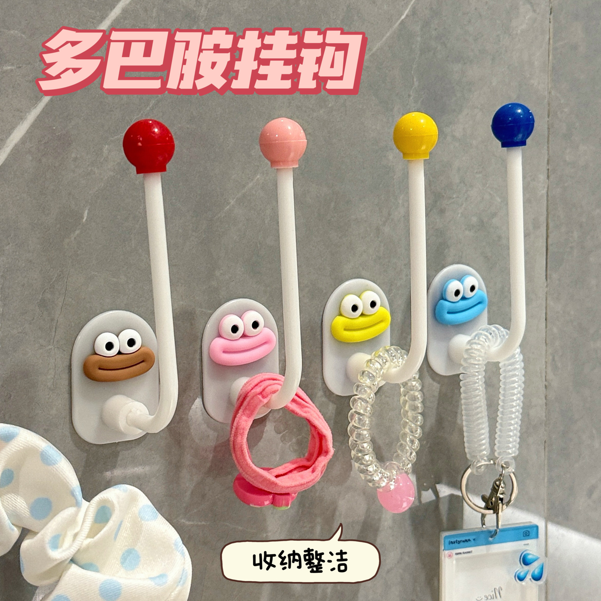 ドーパミンフック粘着フックヘアバンド収納ラックバスルームヘアアクセサリーヘアピンゴムバンドヘッドバンドフックヘアロープジュエリーフック