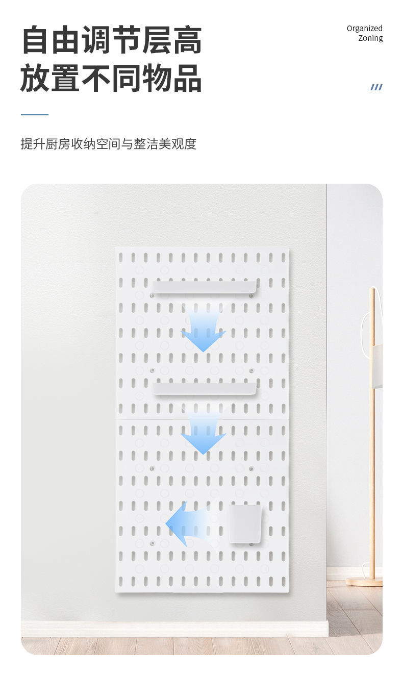 收纳洞洞板免打孔配件墙壁宿舍厨房卫浴墙装饰置物架工具架展示架