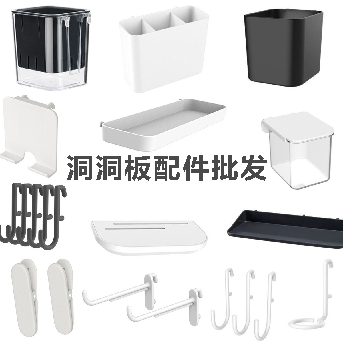 白色黑色洞洞板配件通用适配长孔置物架收纳盒家用挂篮餐边柜挂钩