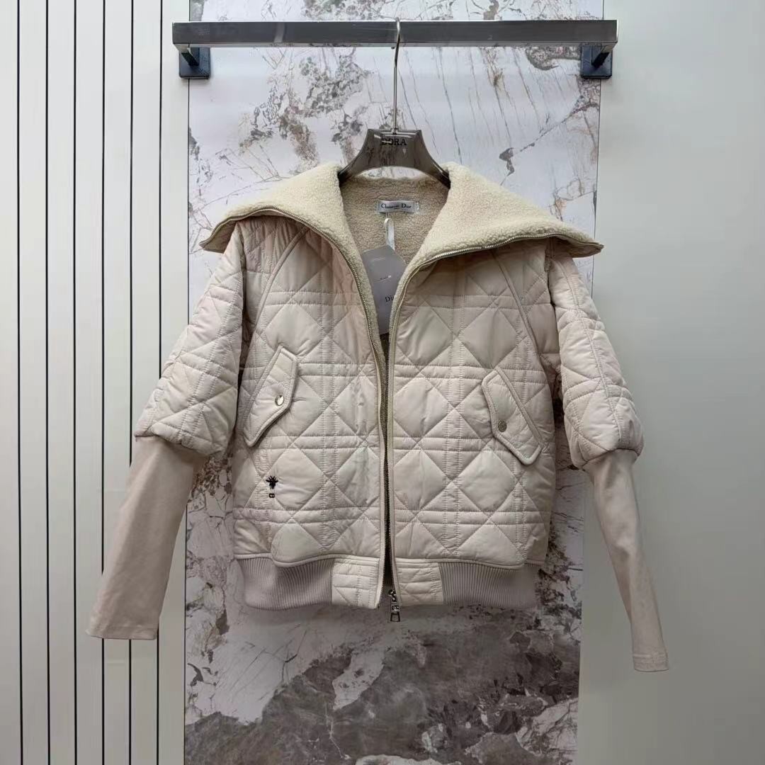 高版本-CD小蜜蜂羊羔毛拼接羽绒服外套海军领减龄设计百搭