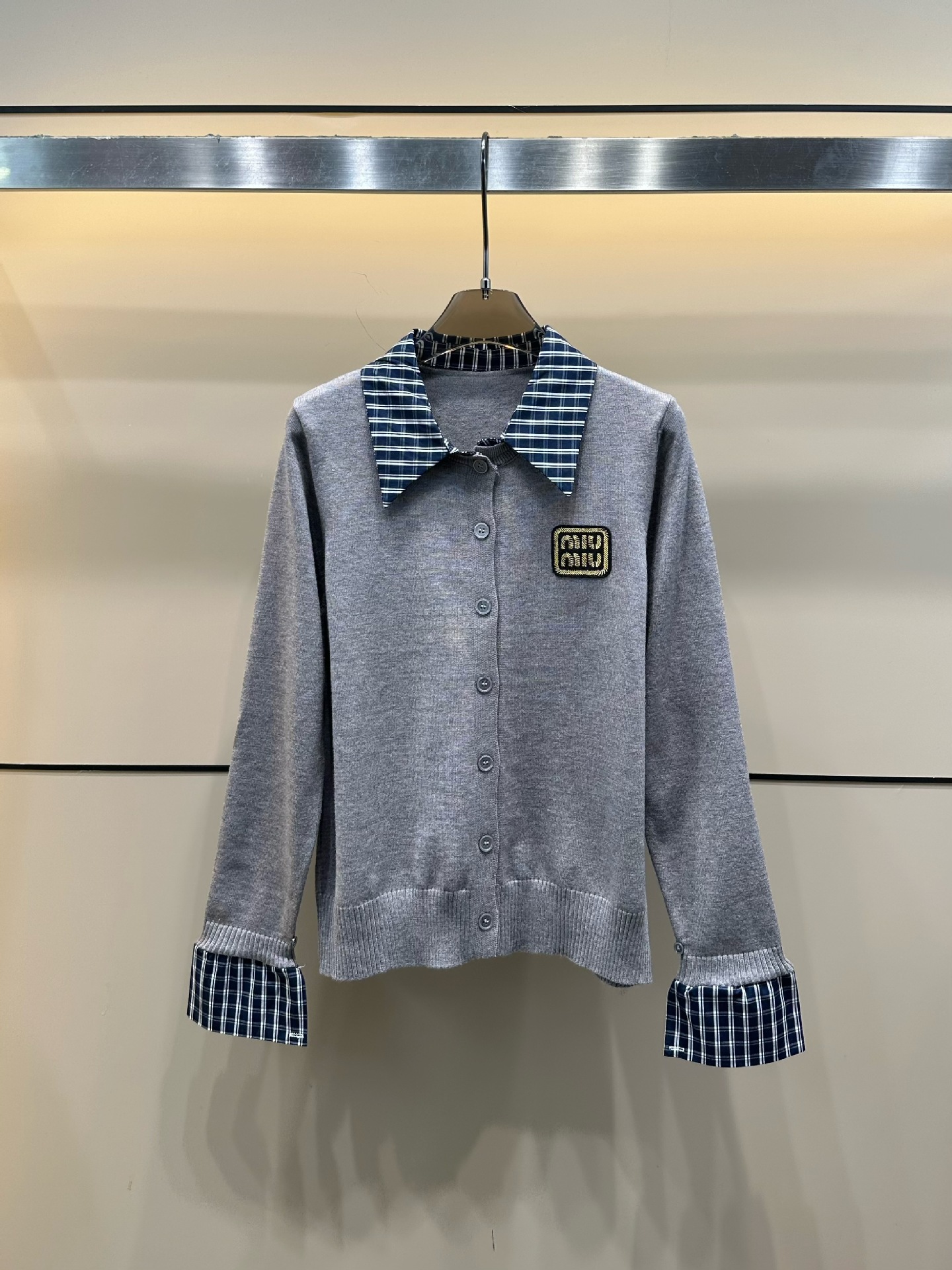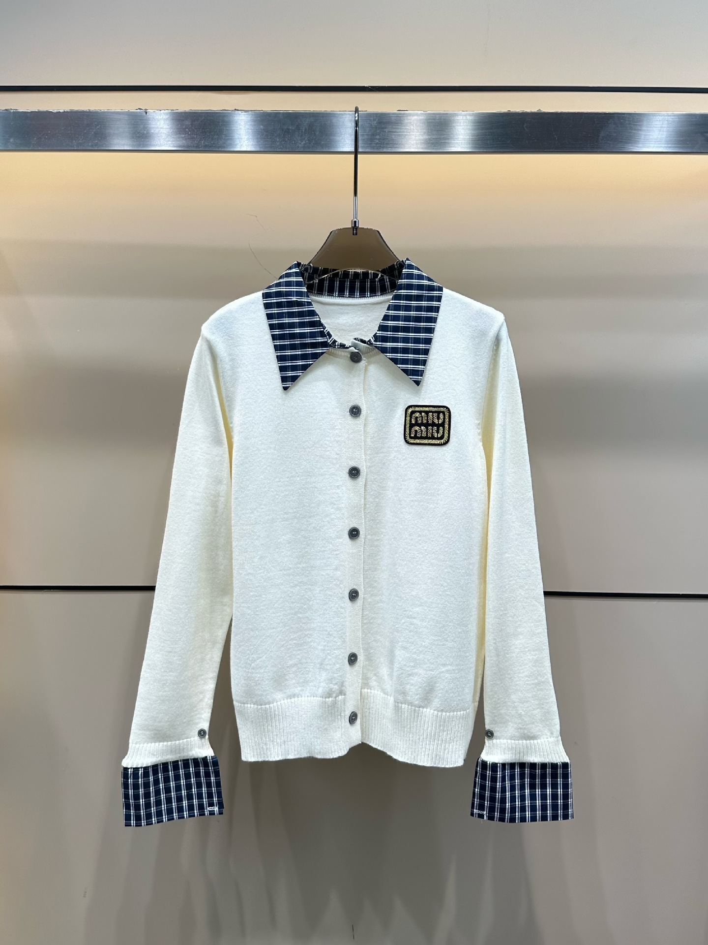 mm25秋冬新款韩系学院风格子拼接翻领袖口针织长袖