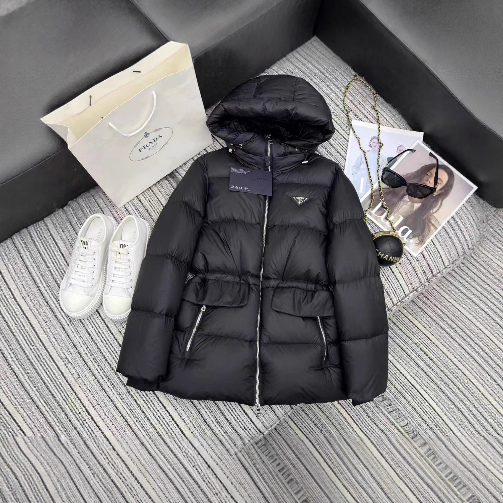 南油女装2025秋冬连帽防风羽绒服外套女抽绳收腰显瘦90白鹅绒冬装
