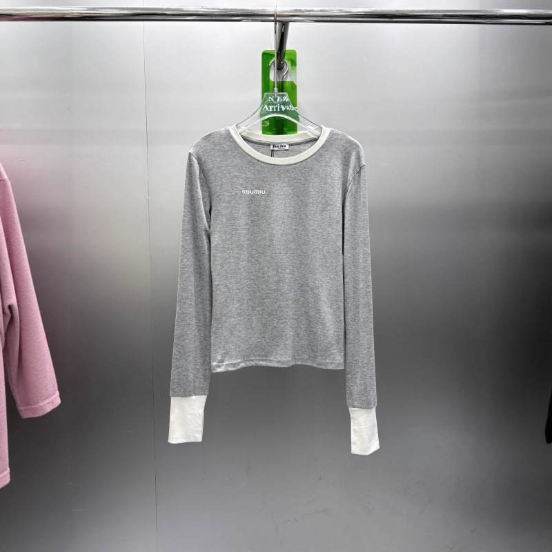 mm25秋冬新款修身百搭领口袖口白色螺纹包边打底衫