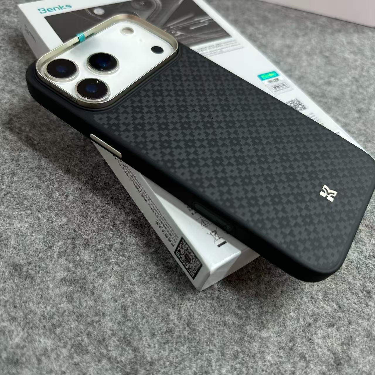 Benks邦克仕iPhone17Promax凯夫拉菱格系列曜石黑磁吸手机壳新款浮织苹果17Pro超薄防摔凯夫拉magsafe保护套芳纶纤维御盾Y2款自带相机按键