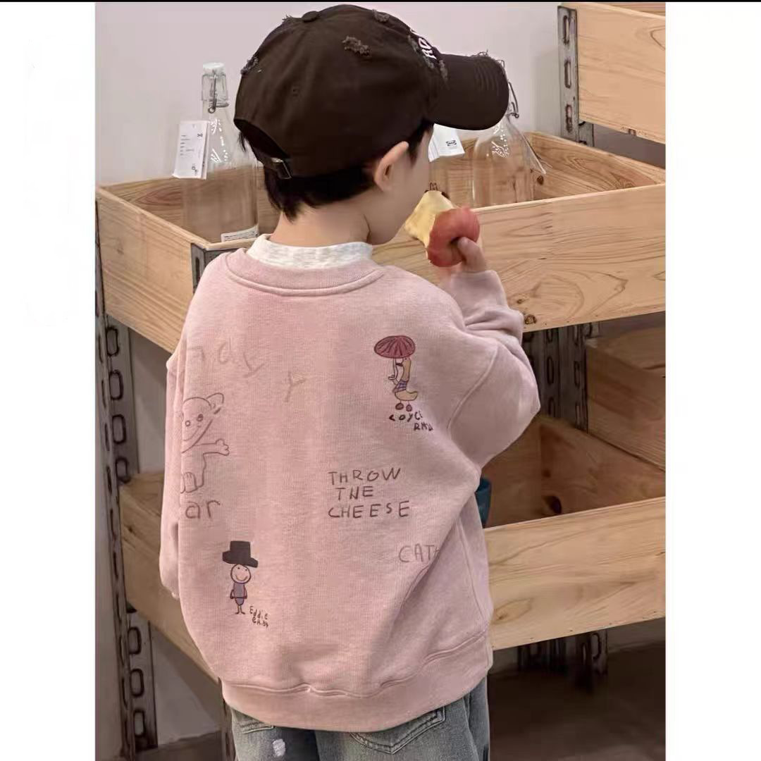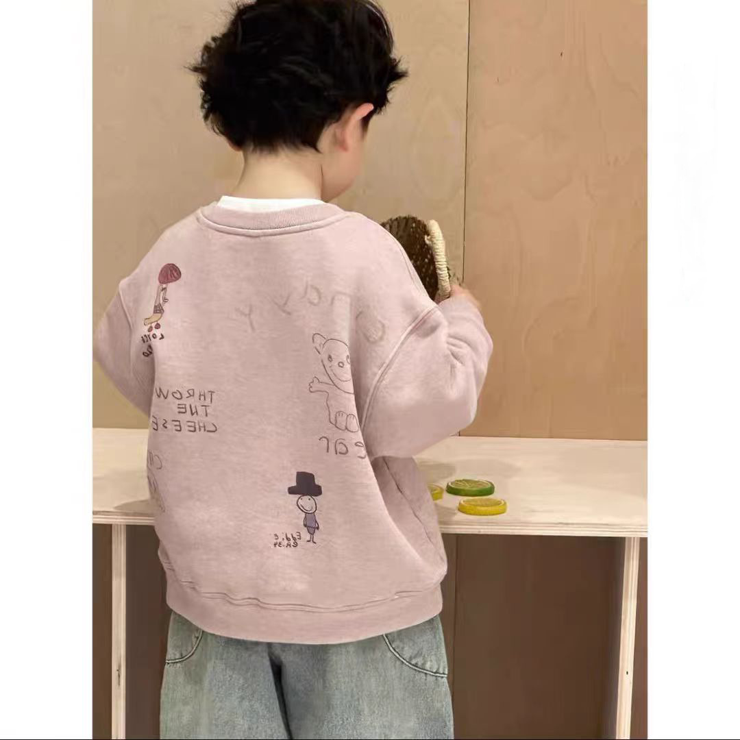 子供用ボトリングシャツ2024秋冬新スタイル多用途トップス男の子と女の子用、ベルベット厚手のスウェットシャツ、長袖子供服