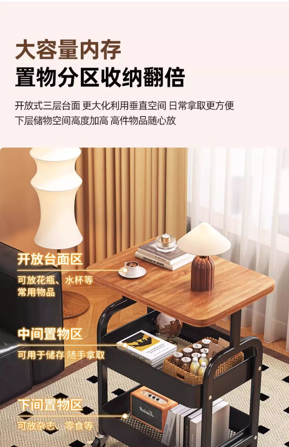 家用小推车床头可移动零食收纳置物架落地床边茶几小桌子客厅边几