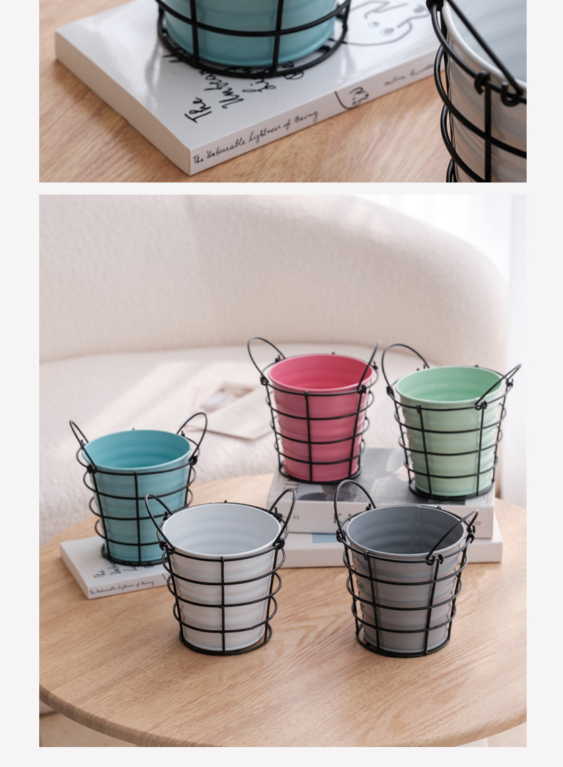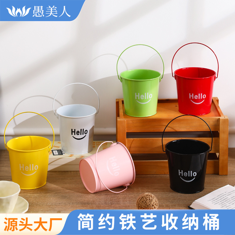 クロスボーダー鉄製小さなバケツ金属鉄製フラワーバケツバルコニー緑の植物多肉植物クリエイティブ植栽ポットデスクトップ装飾収納