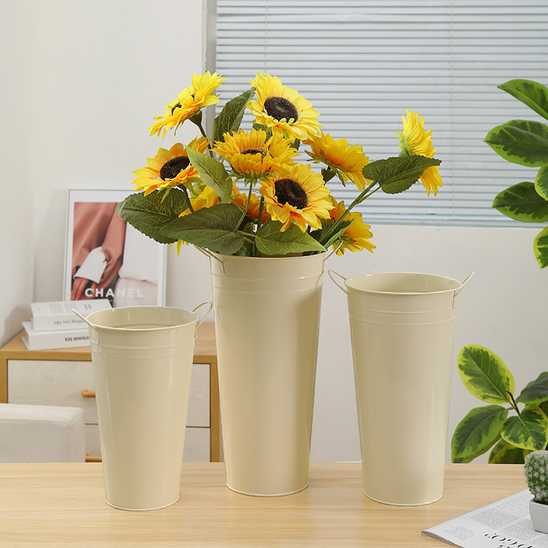 铁皮花桶花店干花盘花插花器醒高筒铁艺花盆鲜花装饰摆件批发跨境
