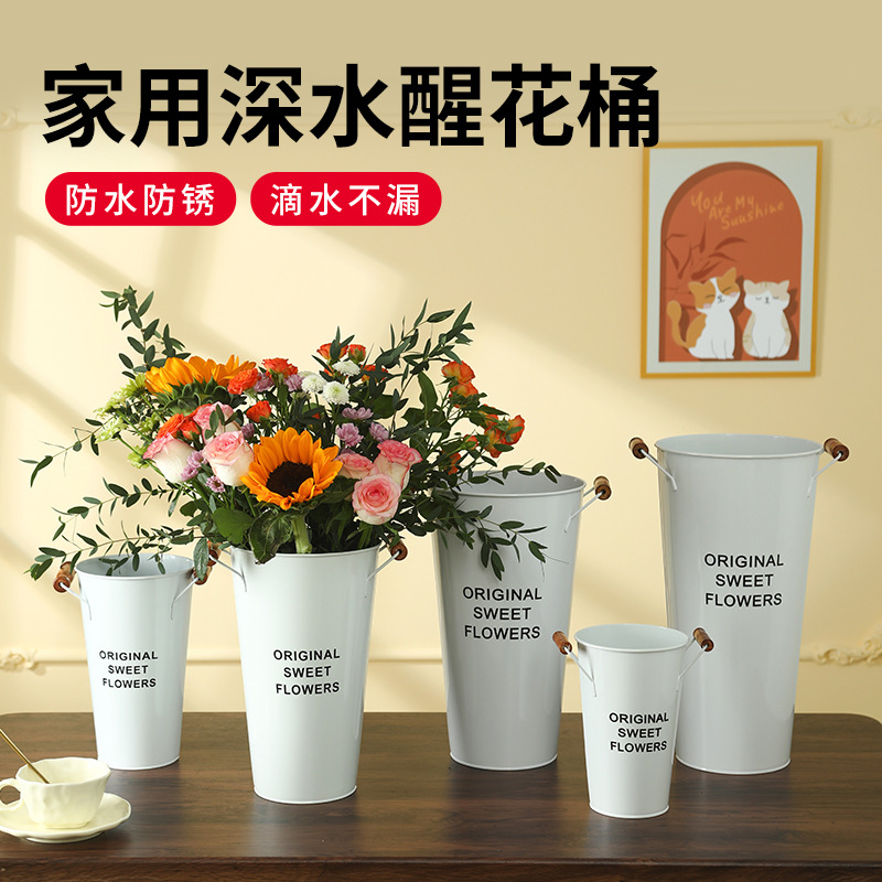 美式铁皮花桶鲜花桶家用醒花桶花店玫瑰花桶满天星百合水养插花桶