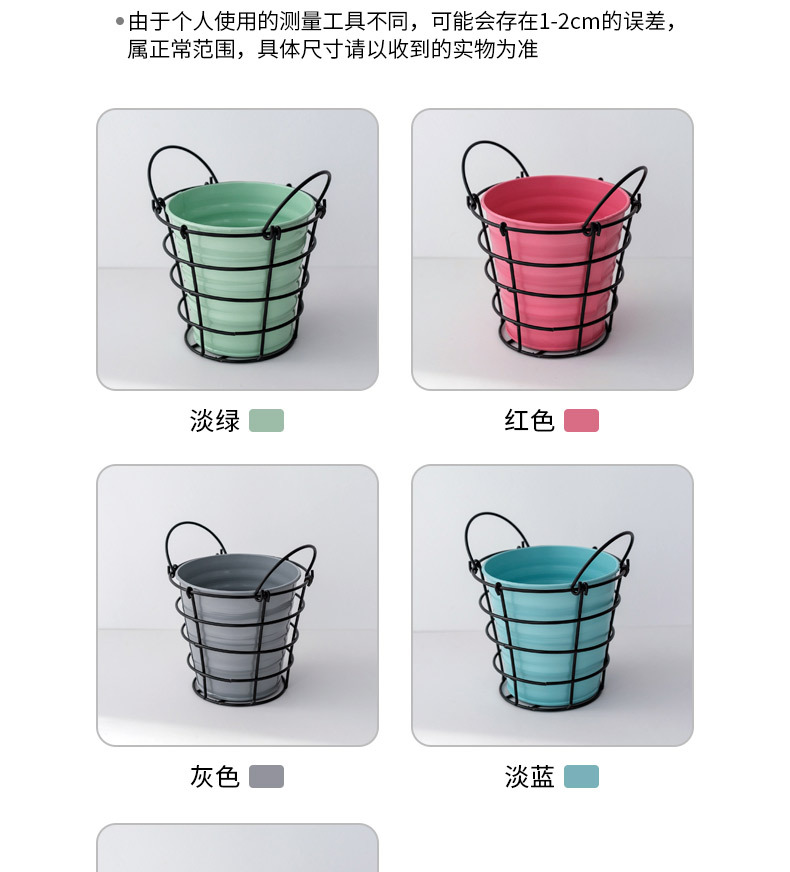 颜色 黑色铁框+白色盆,黑色铁框+粉色盆,黑色铁框+灰色盆,黑色铁框+蓝色盆,黑色铁框+绿色盆