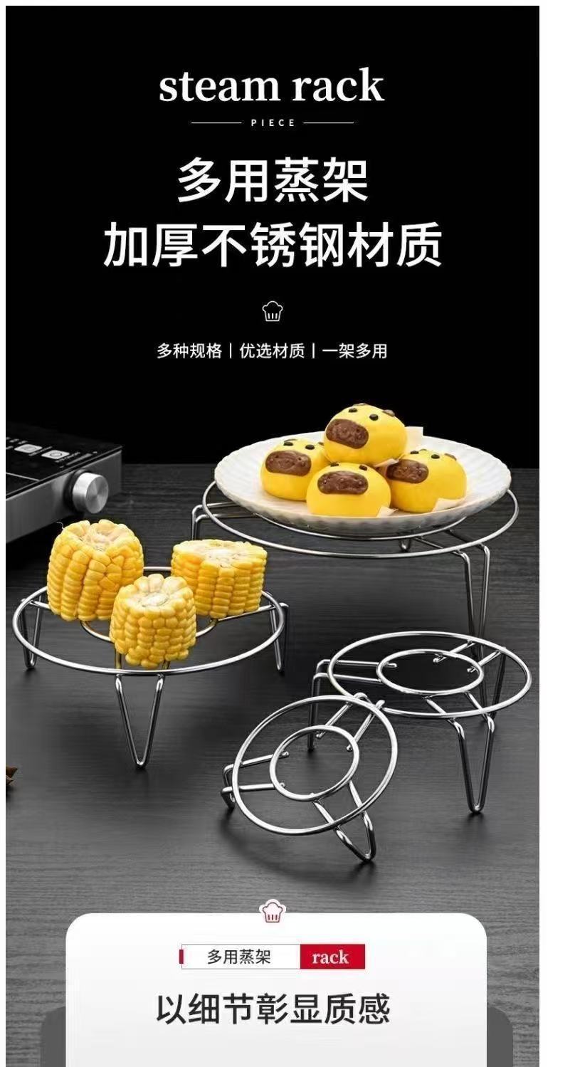 不锈钢蒸架加厚锅架高脚蒸盘家用蒸笼多功能厨房三脚蒸蛋架隔热架