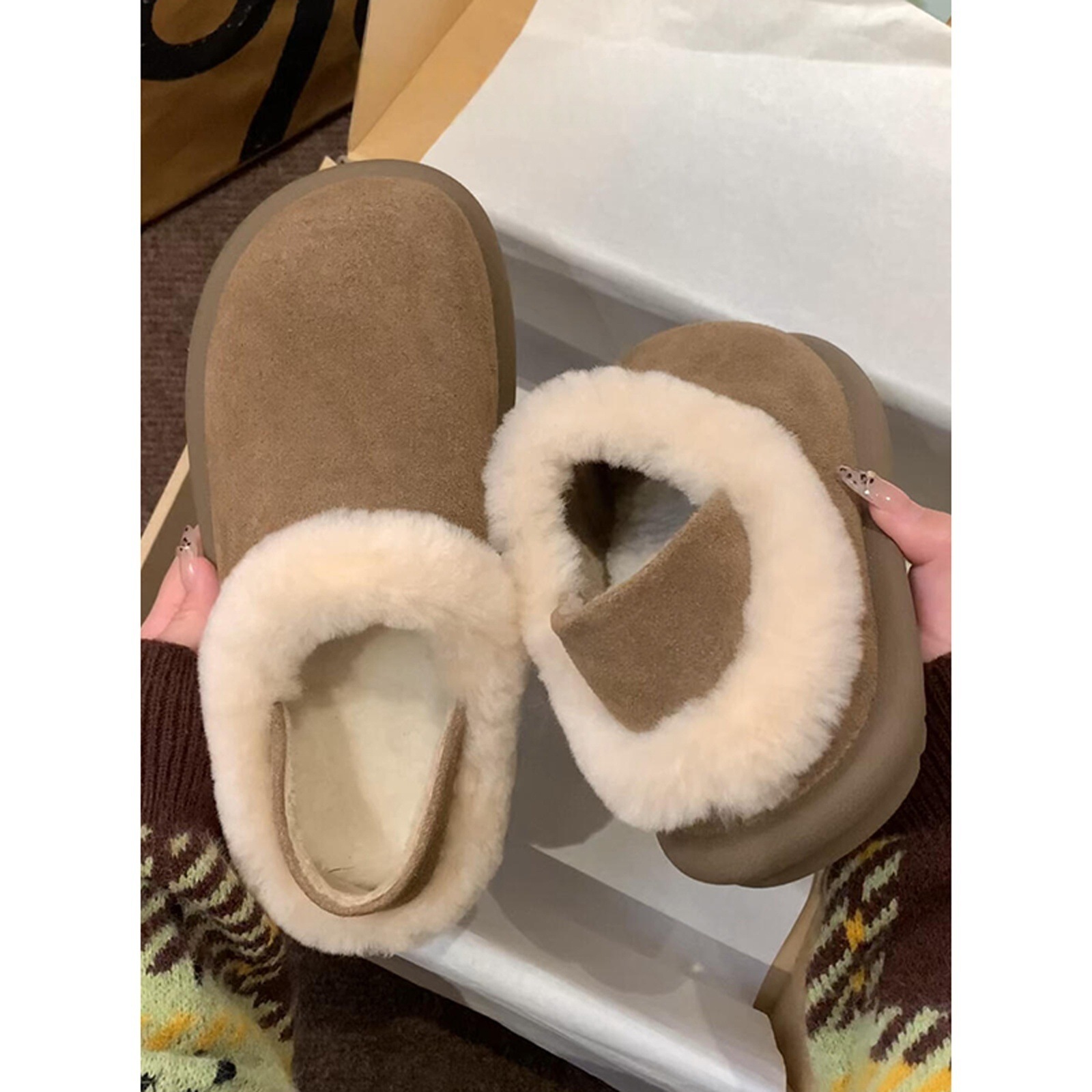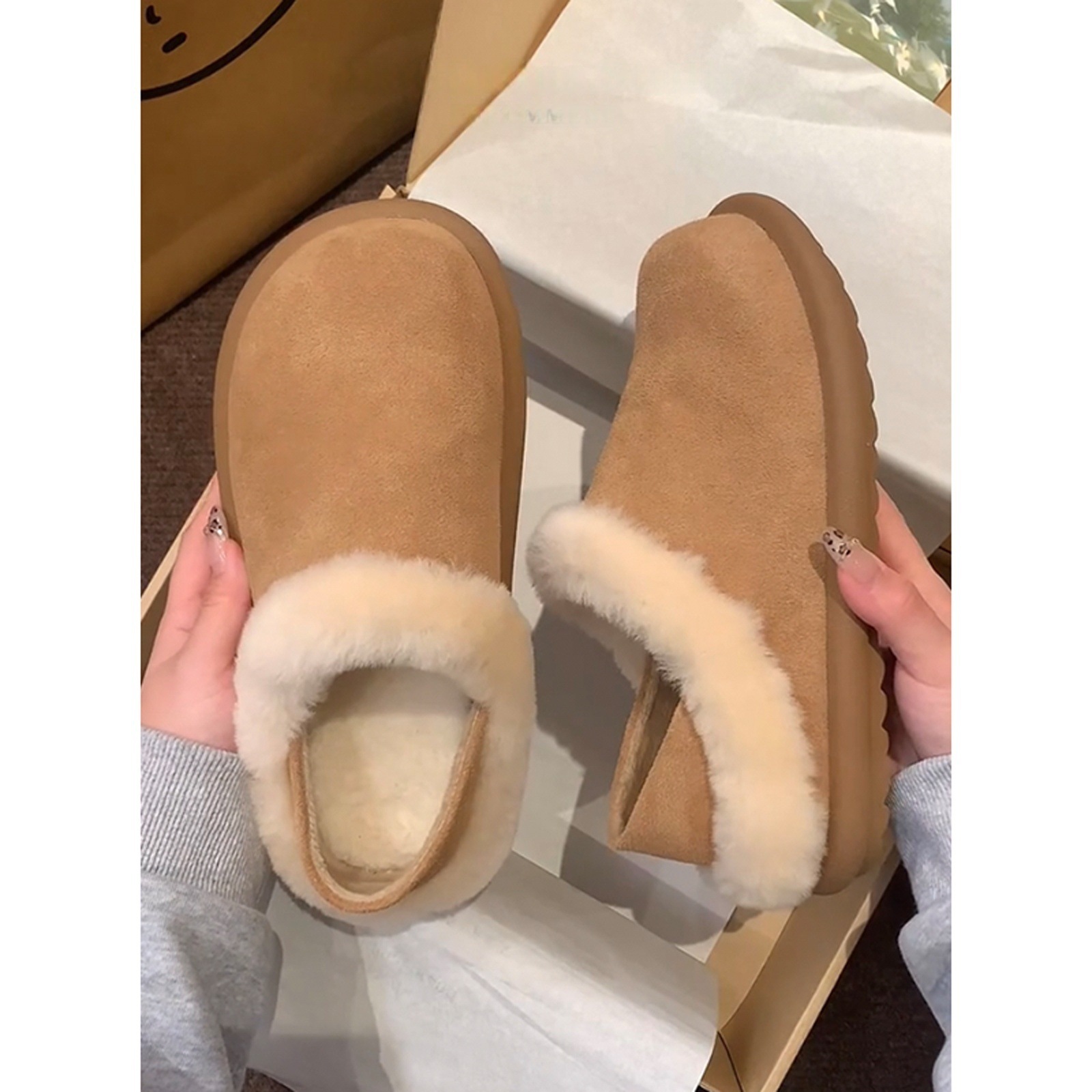 小土豆雪地靴女秋冬加绒毛毛鞋保暖一脚蹬半拖棉鞋外穿穆勒勃肯鞋