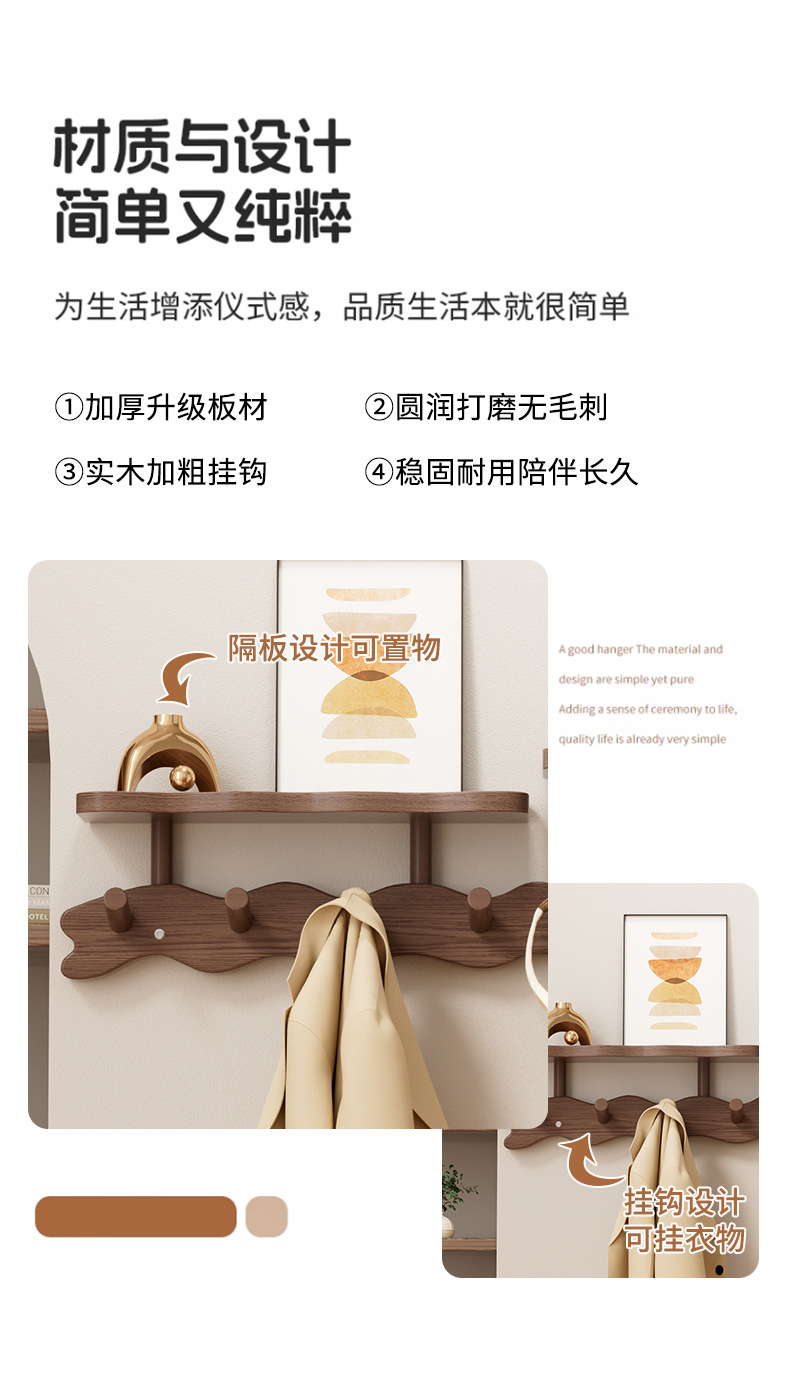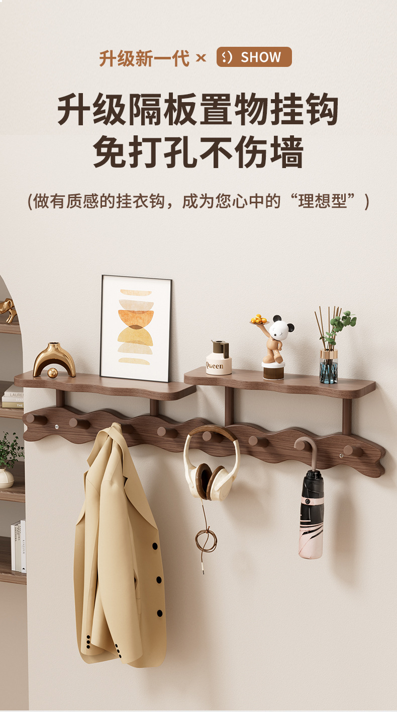 实木钢琴挂衣架创意玄关入户免打孔衣帽架强力承重宿舍壁挂式挂钩