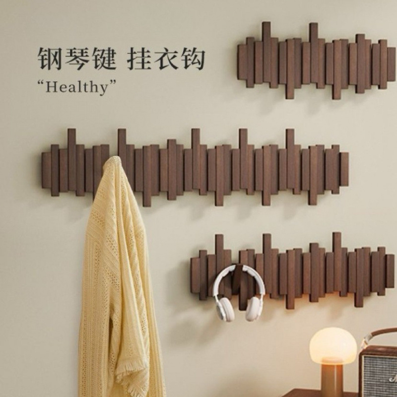 实木挂衣架创意钢琴键挂衣钩入户门墙上壁挂免打孔卧室客厅衣帽架