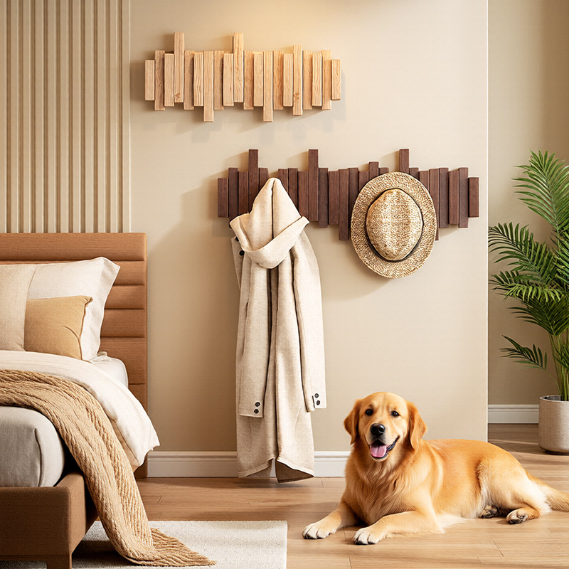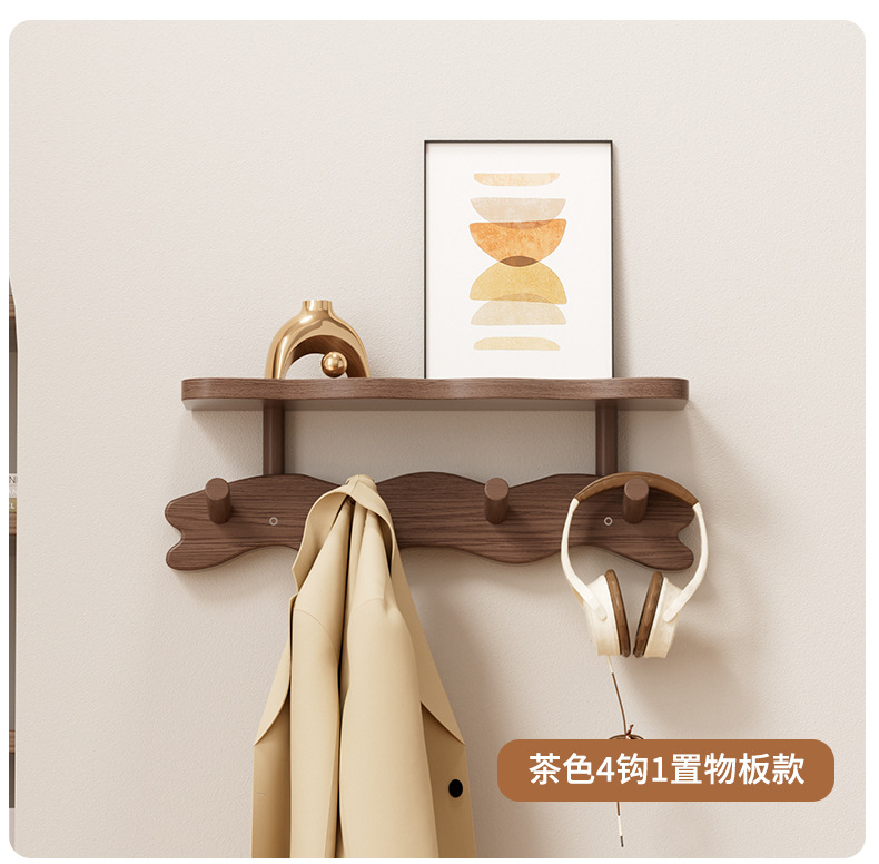 壁掛けフック ブラックウォールナット無垢材ピアノキー洋服ラック 壁掛け洋服フック 玄関用洋服フック
