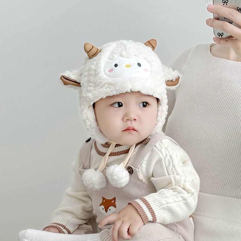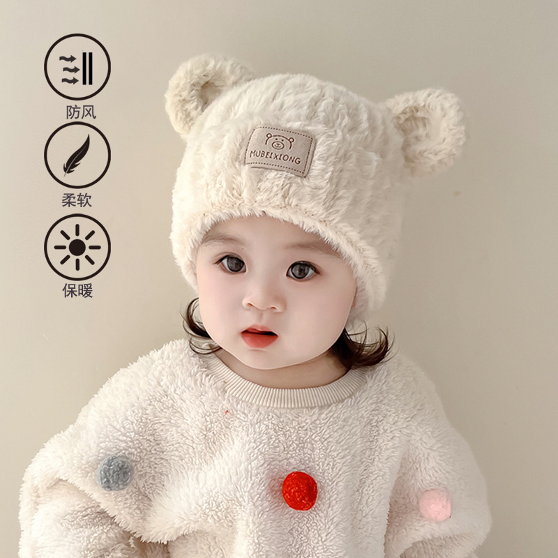 婴儿帽子秋冬季可爱毛绒帽男女宝宝保暖护耳帽儿童防风帽加厚冬天