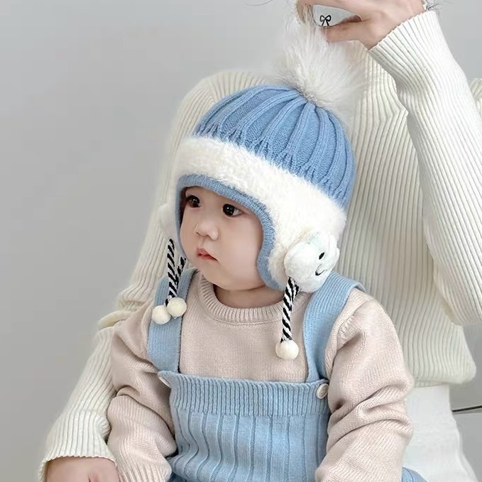 婴幼儿帽子秋冬季可爱保暖加厚毛绒护耳帽女宝宝小月龄防风毛线帽
