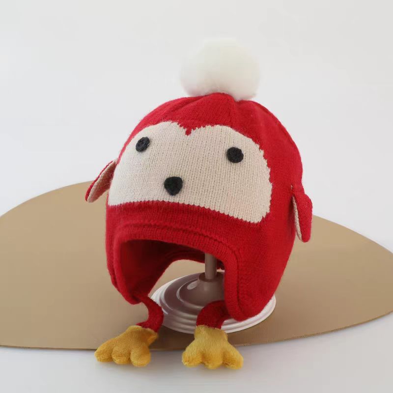 韩版婴儿帽子护耳帽秋冬季保暖毛绒加厚可爱小鸡卡通男女童宝宝帽