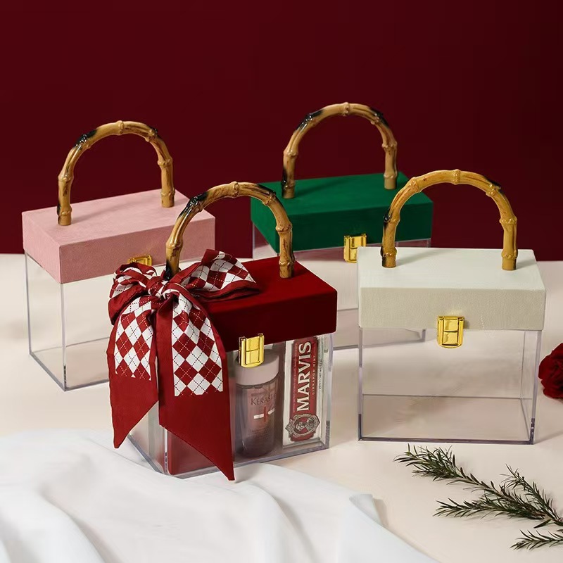 复古丝绒亚克力竹节手提礼盒婚礼伴手礼商务创意礼品包装空盒批发