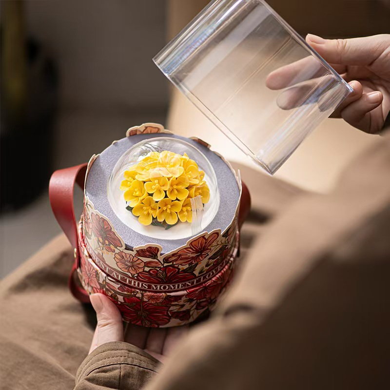 高級な花のベルトの丸い桶の軽い豪華なアクリルの婚約の結婚の喜糖の箱の贈り物の包装箱の花嫁の贈り物の箱