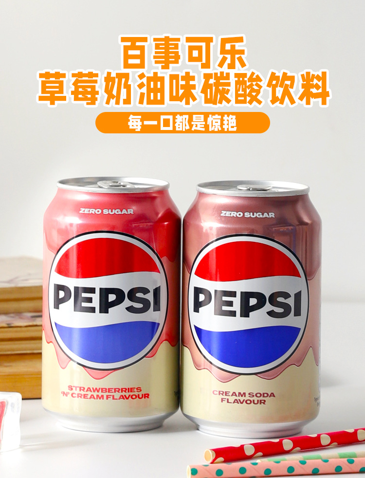 英国进口Pepsi百事可乐草莓奶油味可乐碳酸饮料网红汽水夏日现货