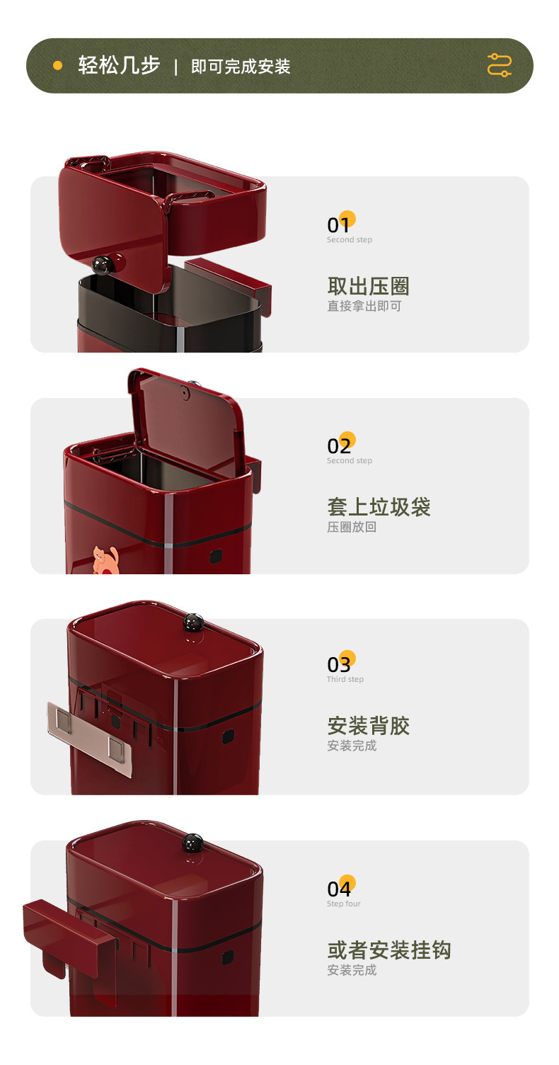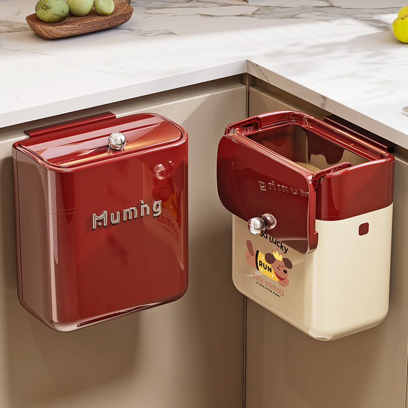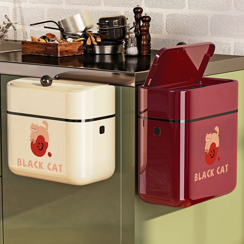 壁挂式垃圾桶厨房免打孔橱柜门悬挂带盖家用新年纸篓夹缝收纳筒