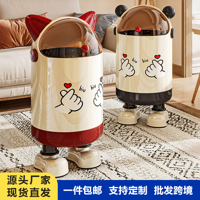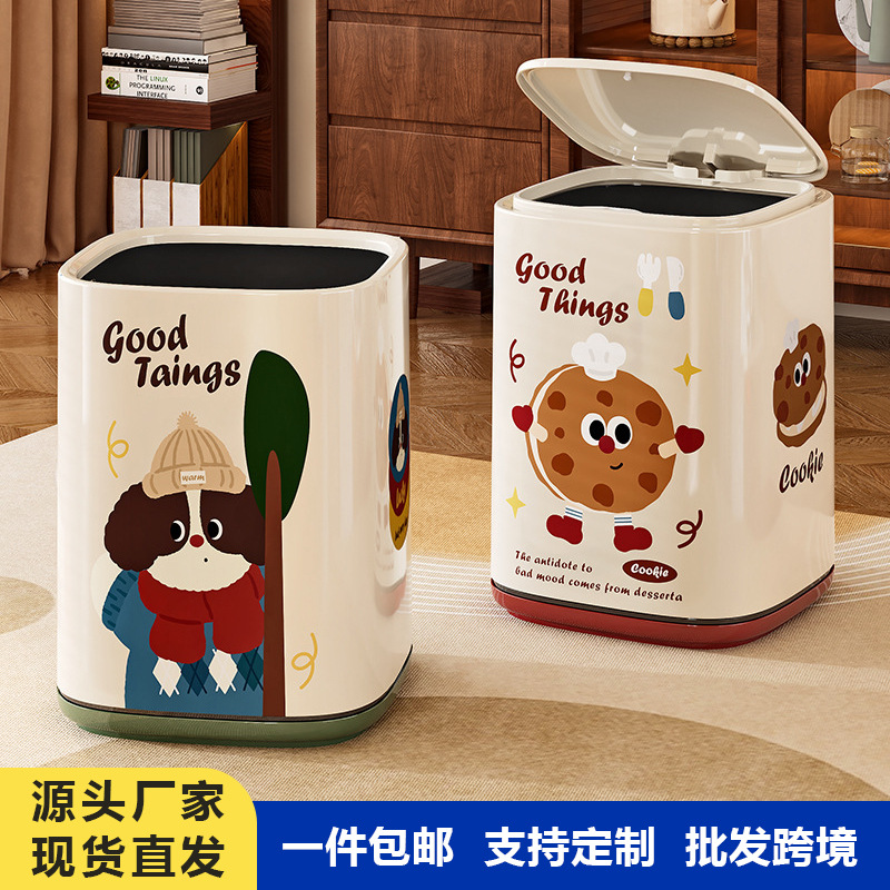 漫画ゴミ箱ふた付き収納筒家庭用高颜値紙かご創造模様寝室客間ゴミ箱
