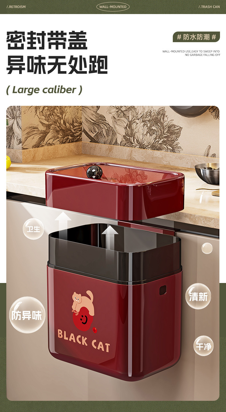 厨房垃圾桶家用高颜值壁挂式免弯腰厨余卫生间复古密封带盖垃圾篓
