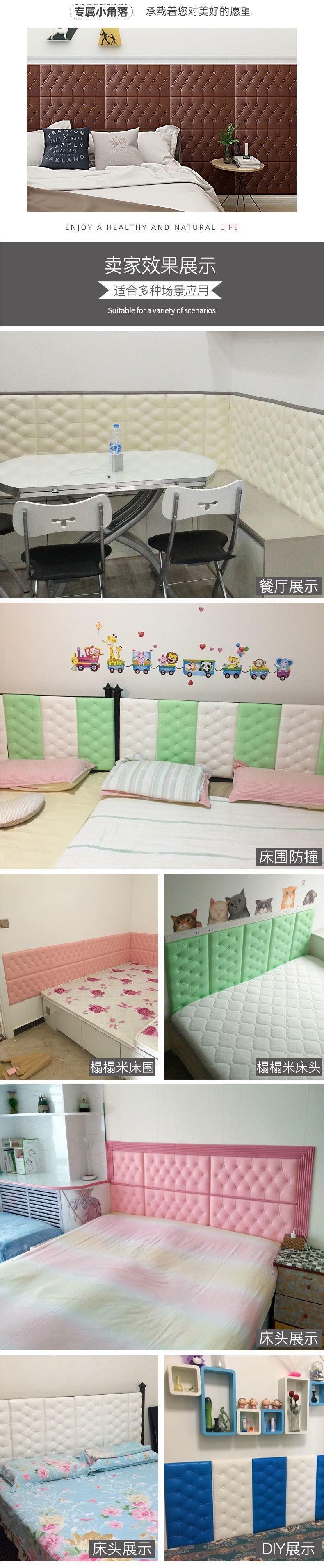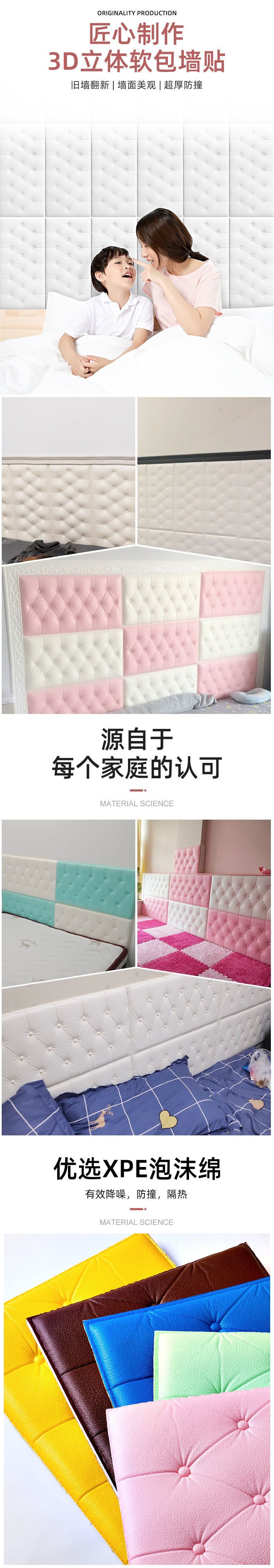 加厚自粘床头板软包防撞榻榻米炕围3d立体墙贴卧室墙围背景墙装饰