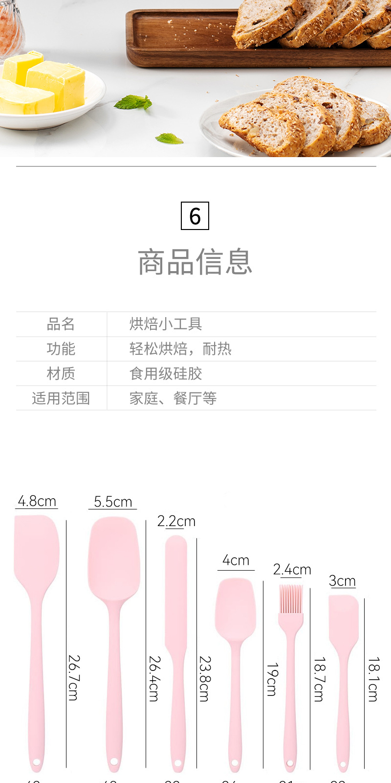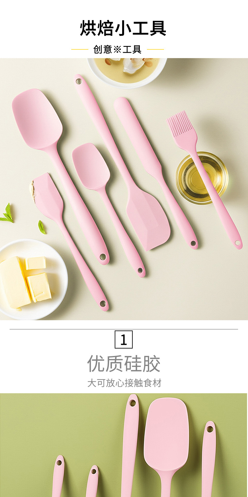 一体式硅胶刮刀6件套烘焙套装耐高温蛋糕抹刀奶油刀油刷Spatula