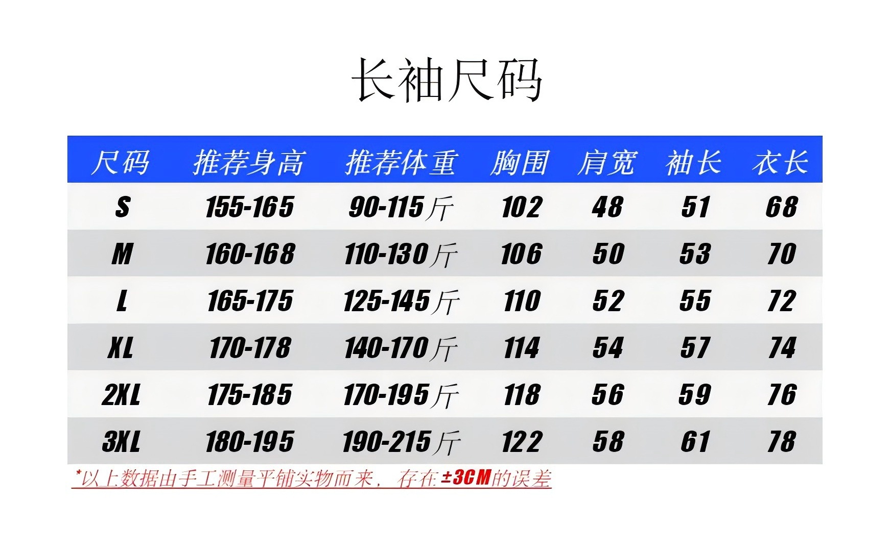 尺码 S【建议90-115斤】,M【建议110-130斤】,L【建议125-150斤】,XL【建议140-170斤】,2XL【建议170-195斤】,3XL【建议190-215斤】