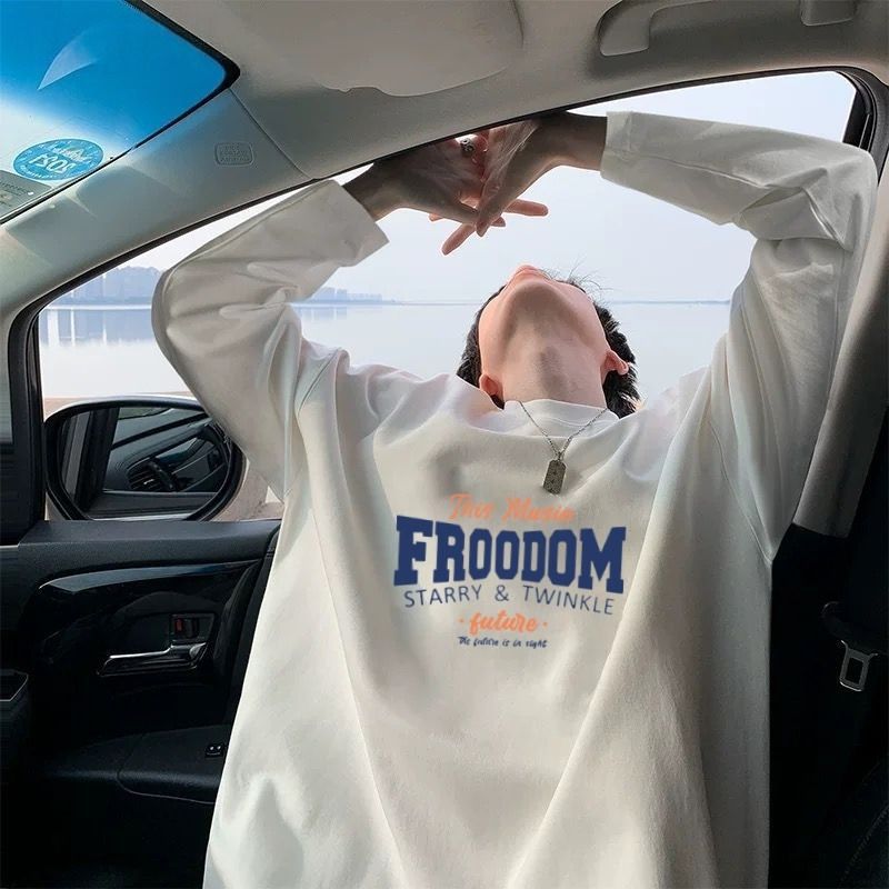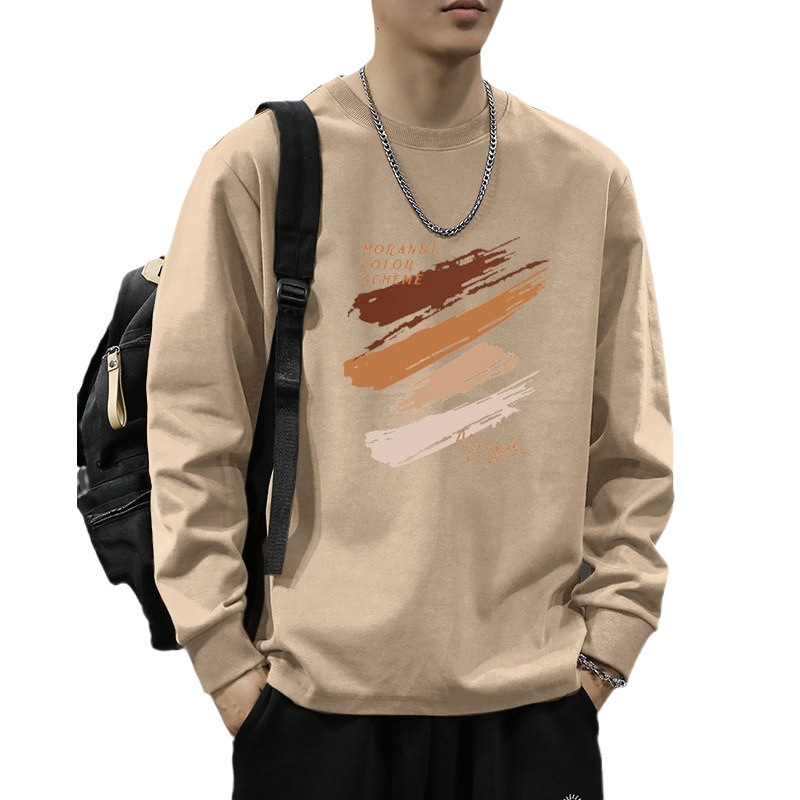 100%纯棉圆领长袖T恤男士春秋季新款潮流港风宽松百搭体恤衫上衣