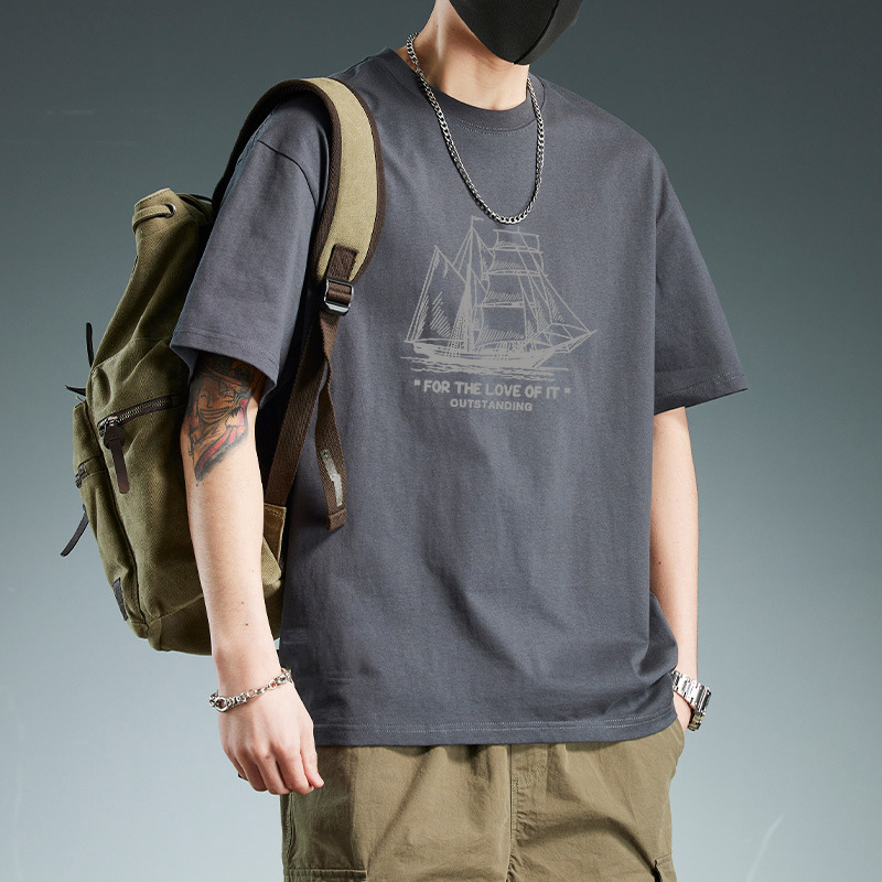 200 グラムヘビーウェイト純綿日本製半袖 Tシャツメンズ夏の新しいトレンディなルーズボーイズメンズ半袖 Tシャツトップ