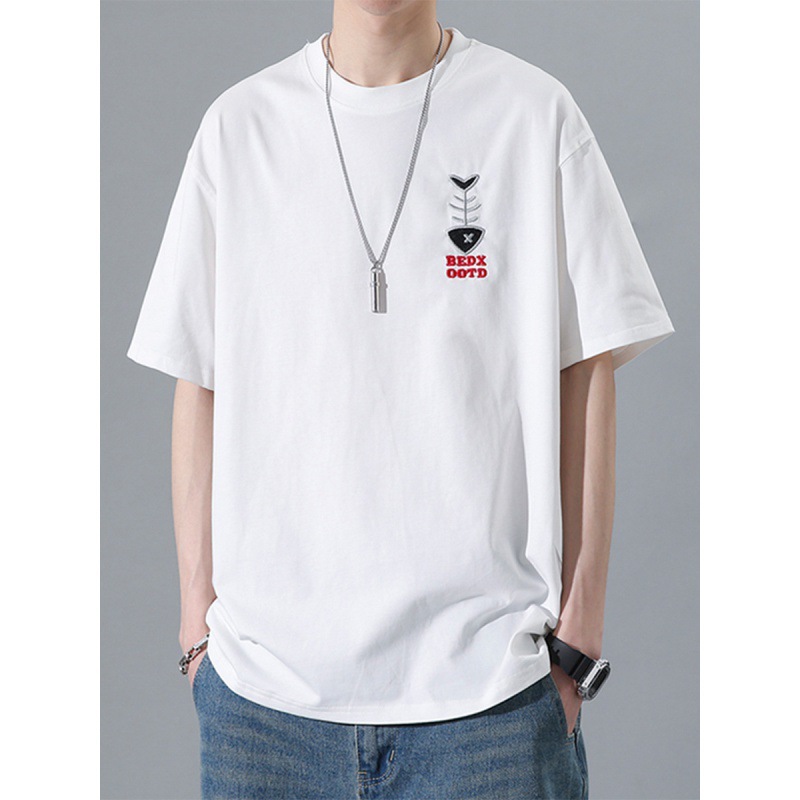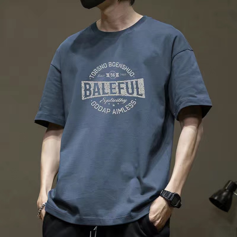 半袖tシャツ男性夏新作ファッションアルファベットプリント半袖上着男性ゆるい純綿丸襟tシャツT