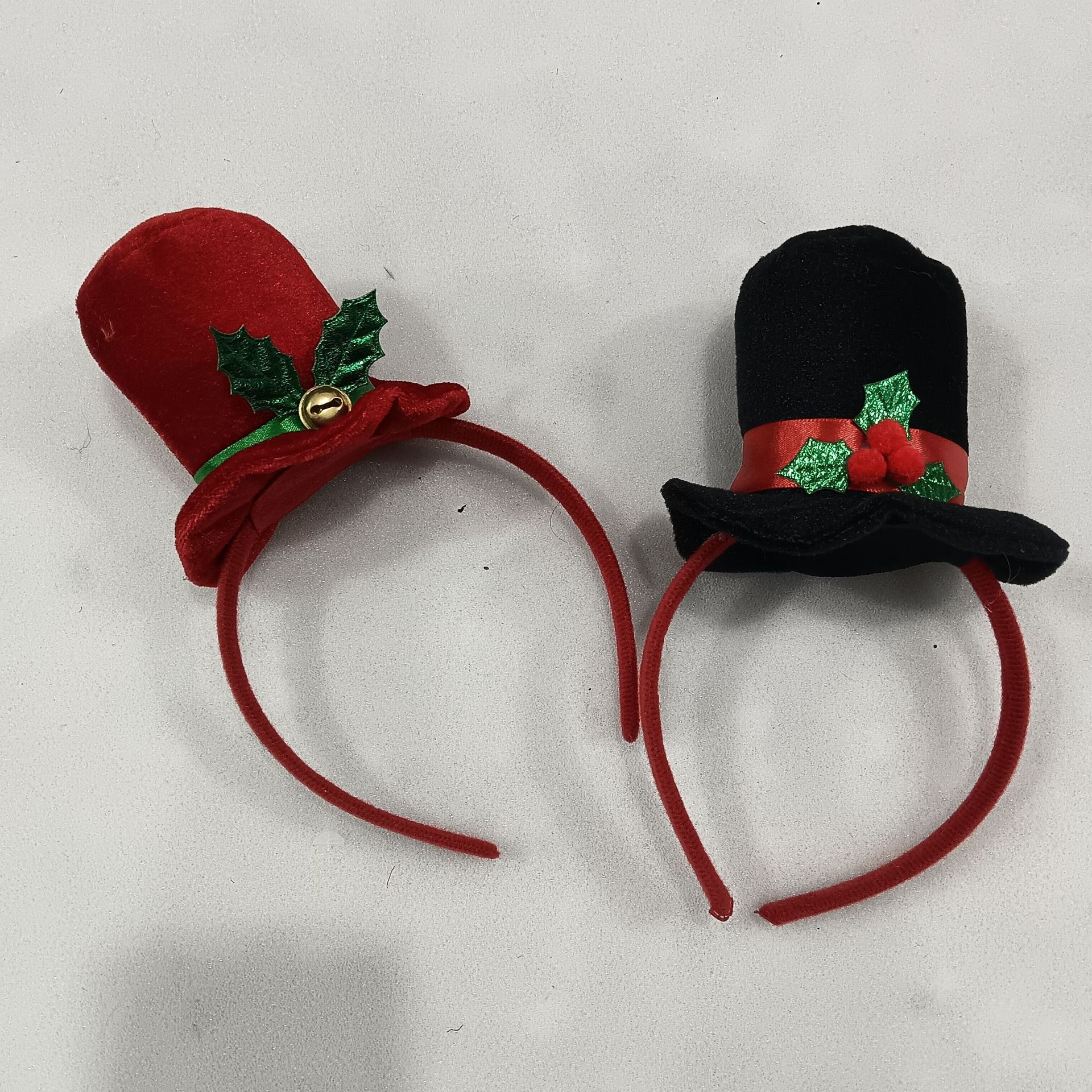 圣诞节节日派对成人儿童红色尖帽礼帽绿叶铃铛发箍头饰装饰配饰