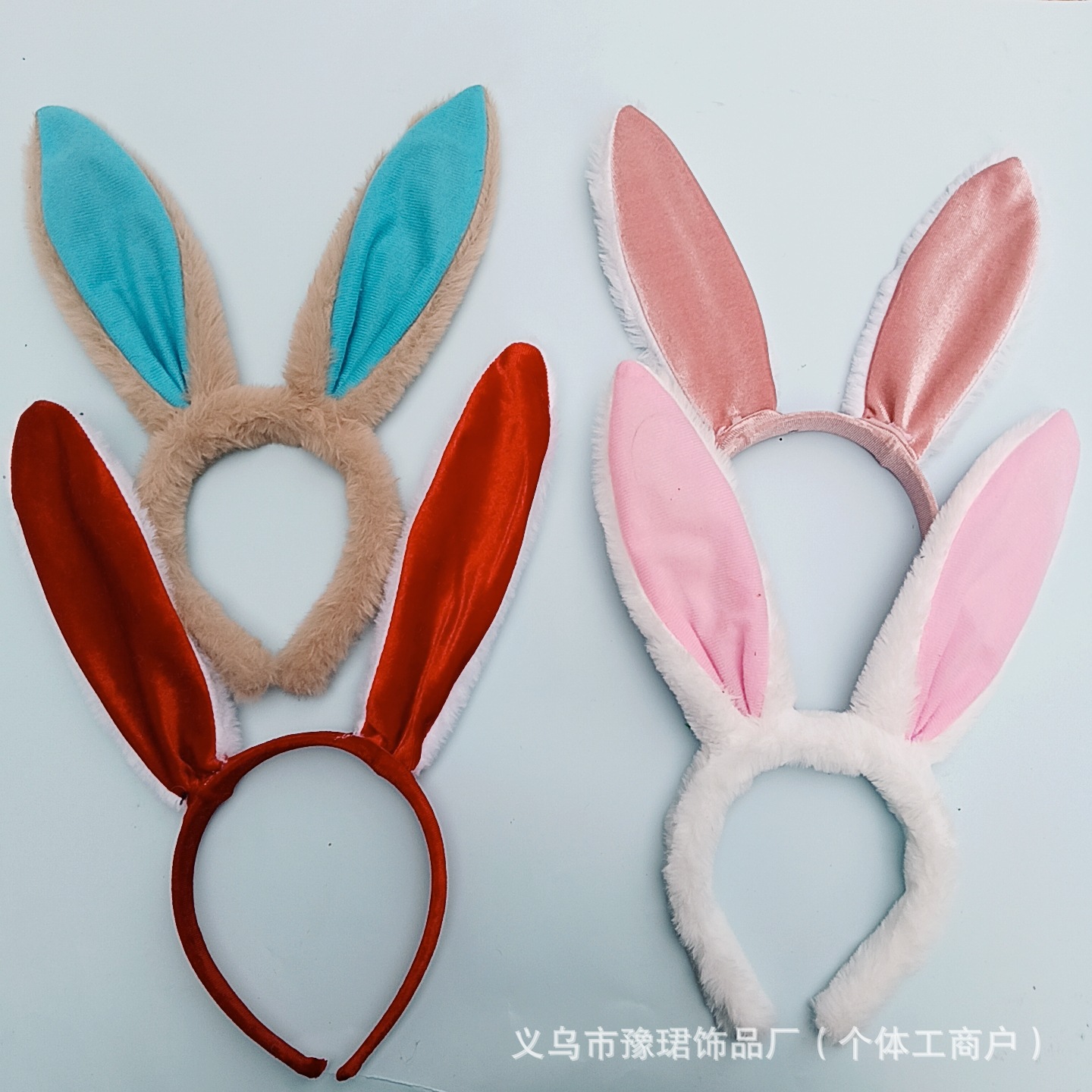 跨境节日头饰复活节可爱卡通毛绒兔耳发箍儿童长耳兔配饰cos发饰