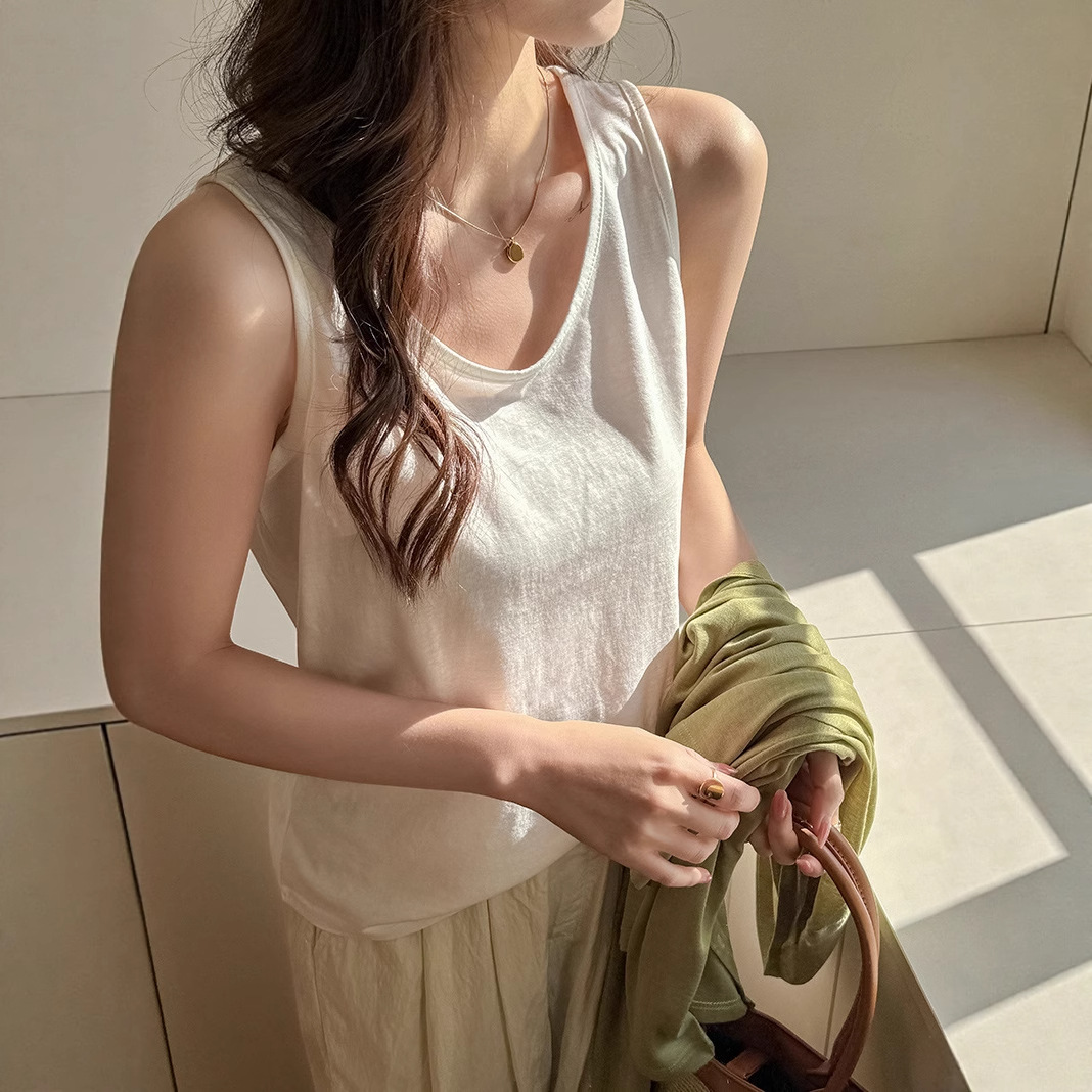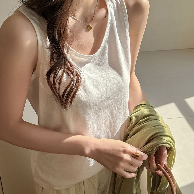 綿と麻の小さなサスペンダーレディースルーズで軽いインナーVネック綿と麻のベストノースリーブトップ夏の新しい文学トレンド