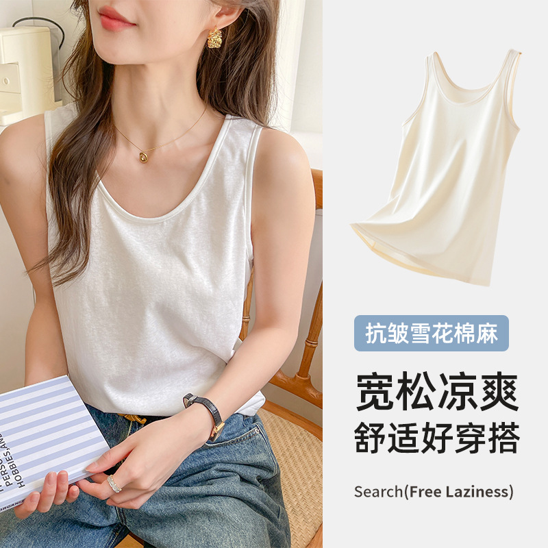 棉麻背心2025新款冰丝内搭白色宽松上衣雪花棉打底小吊带女夏外穿