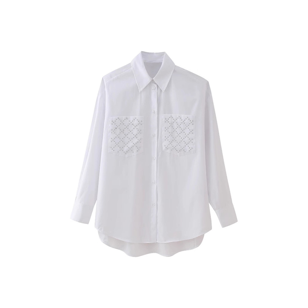 国境を越えた貿易婦人服 2025 夏の新カジュアルファッション無地リベット装飾ポプリンルーズシャツ