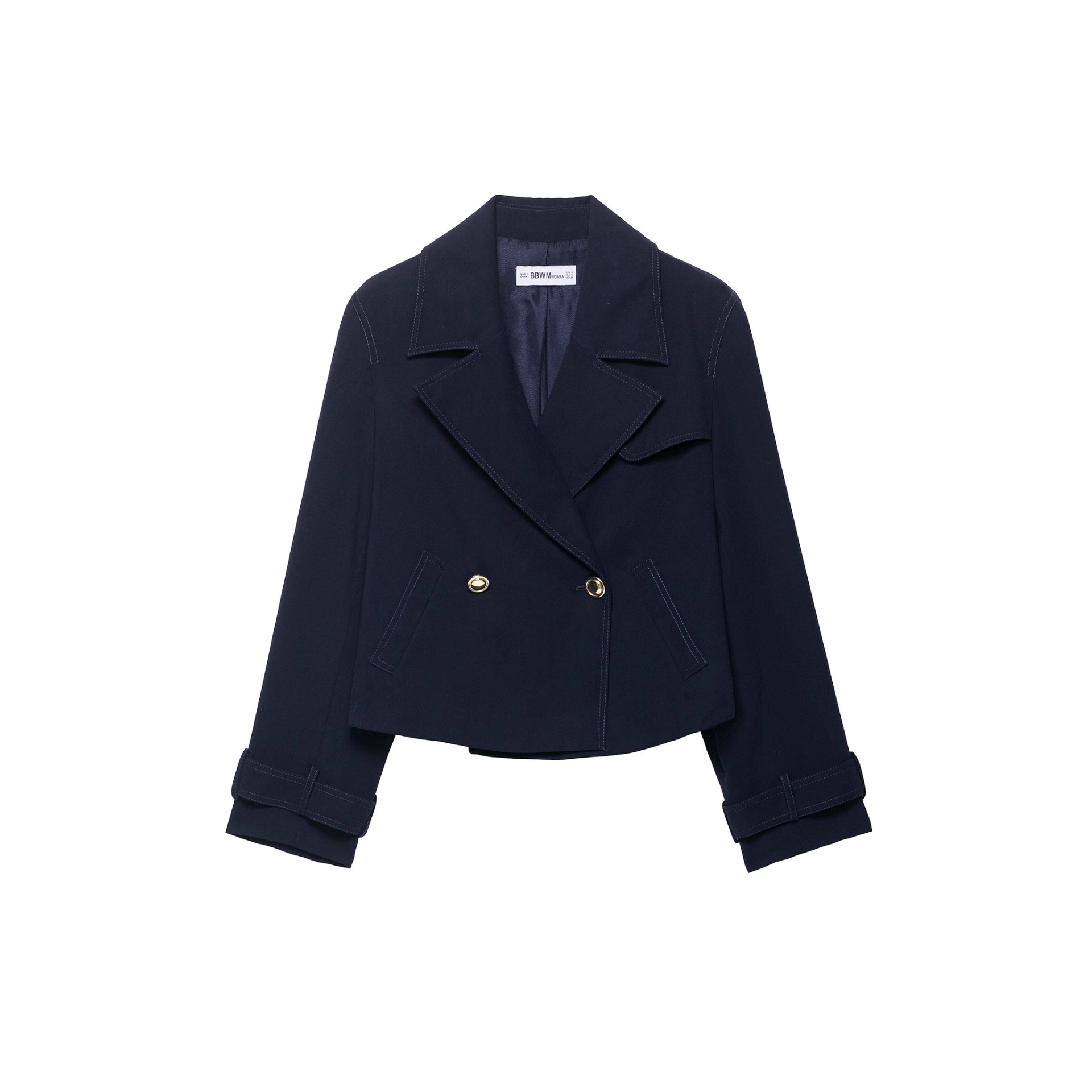 跨境外贸批发女装秋季新款欧美风格百搭时尚西装领短款双襟短外套